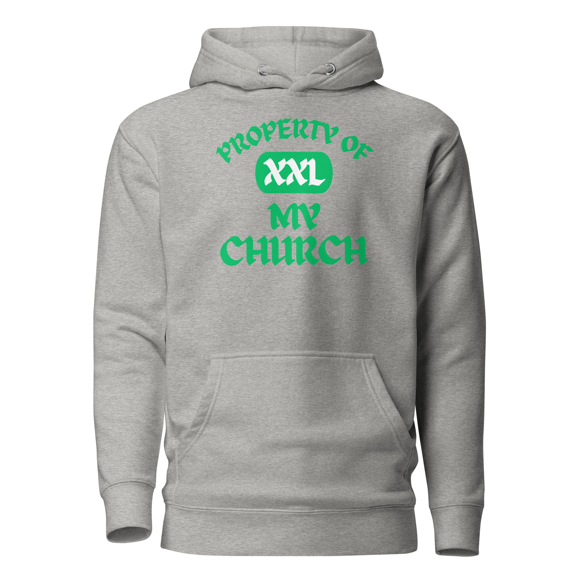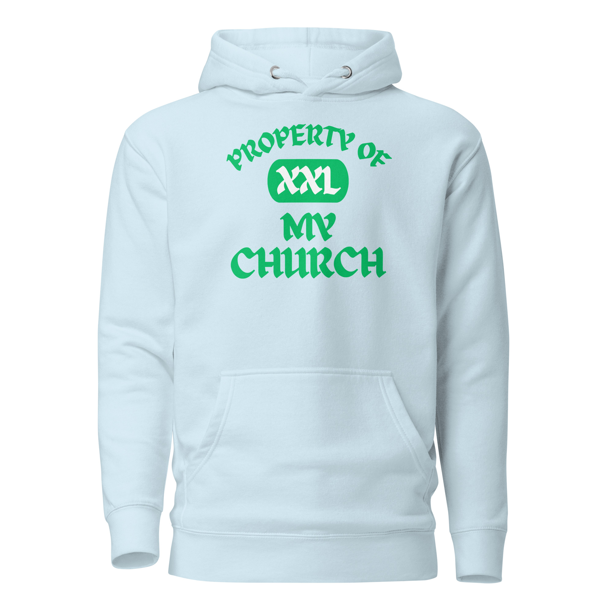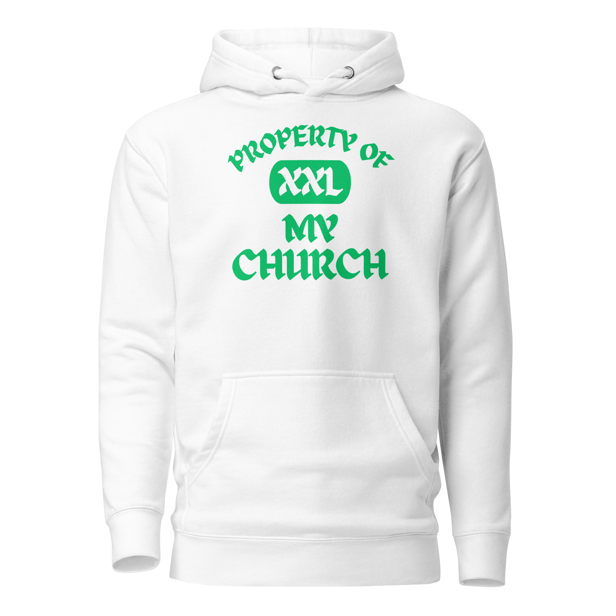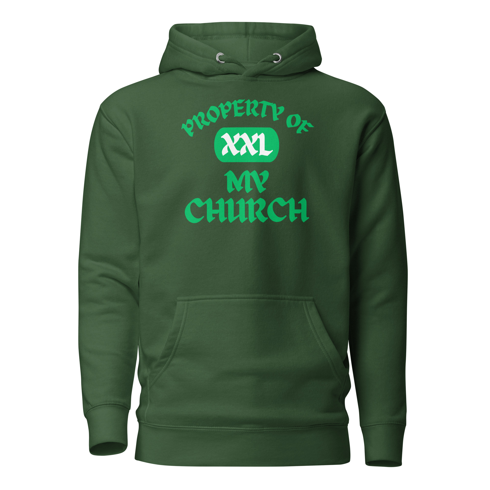 Unisex Hoodie Property-Of-The-Church-Celandine-in-Green-Letters